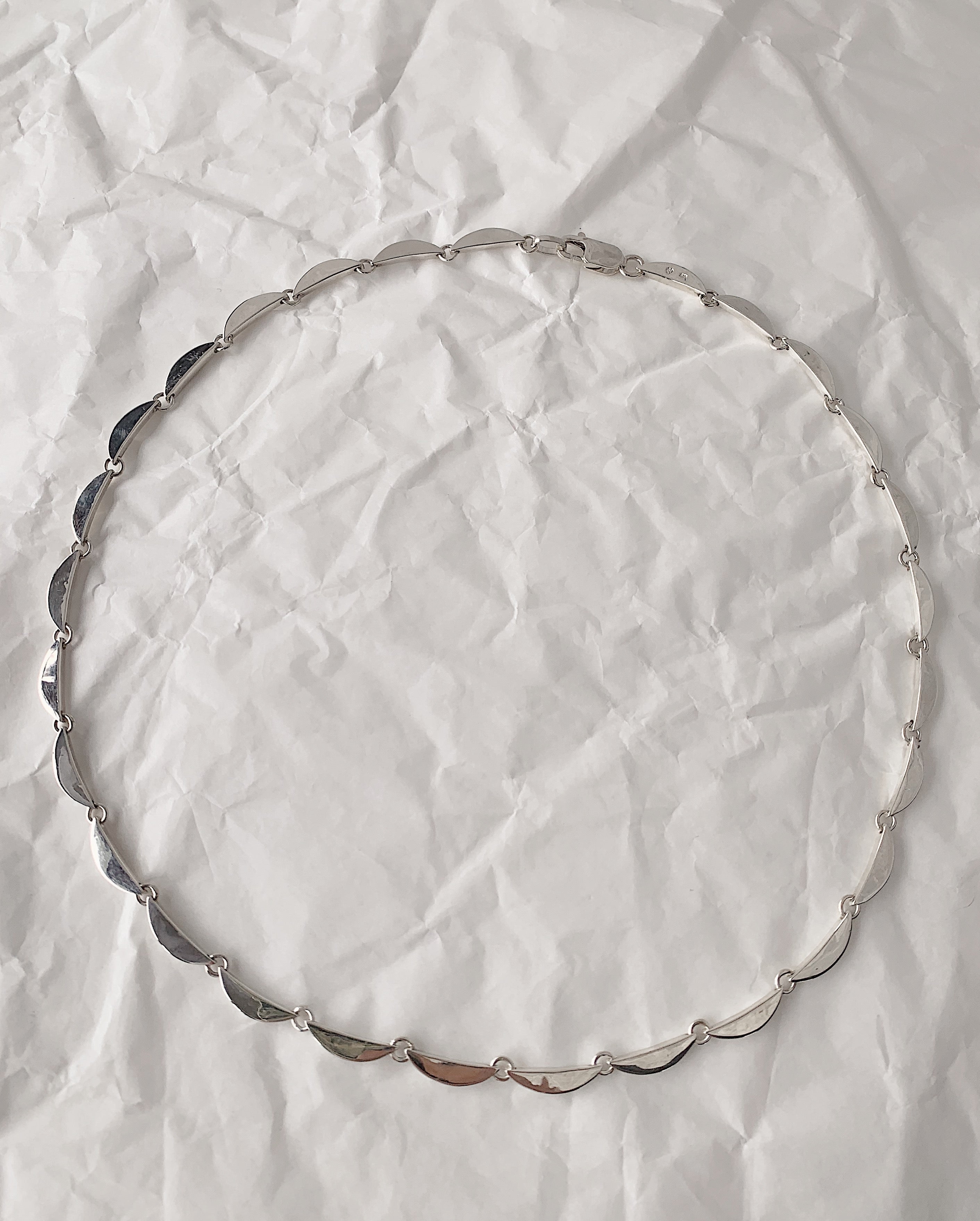Necklace inspired by moonlight. Repeating, slender crescents encircle the neck and dressed up or down, create an elevated signature look.