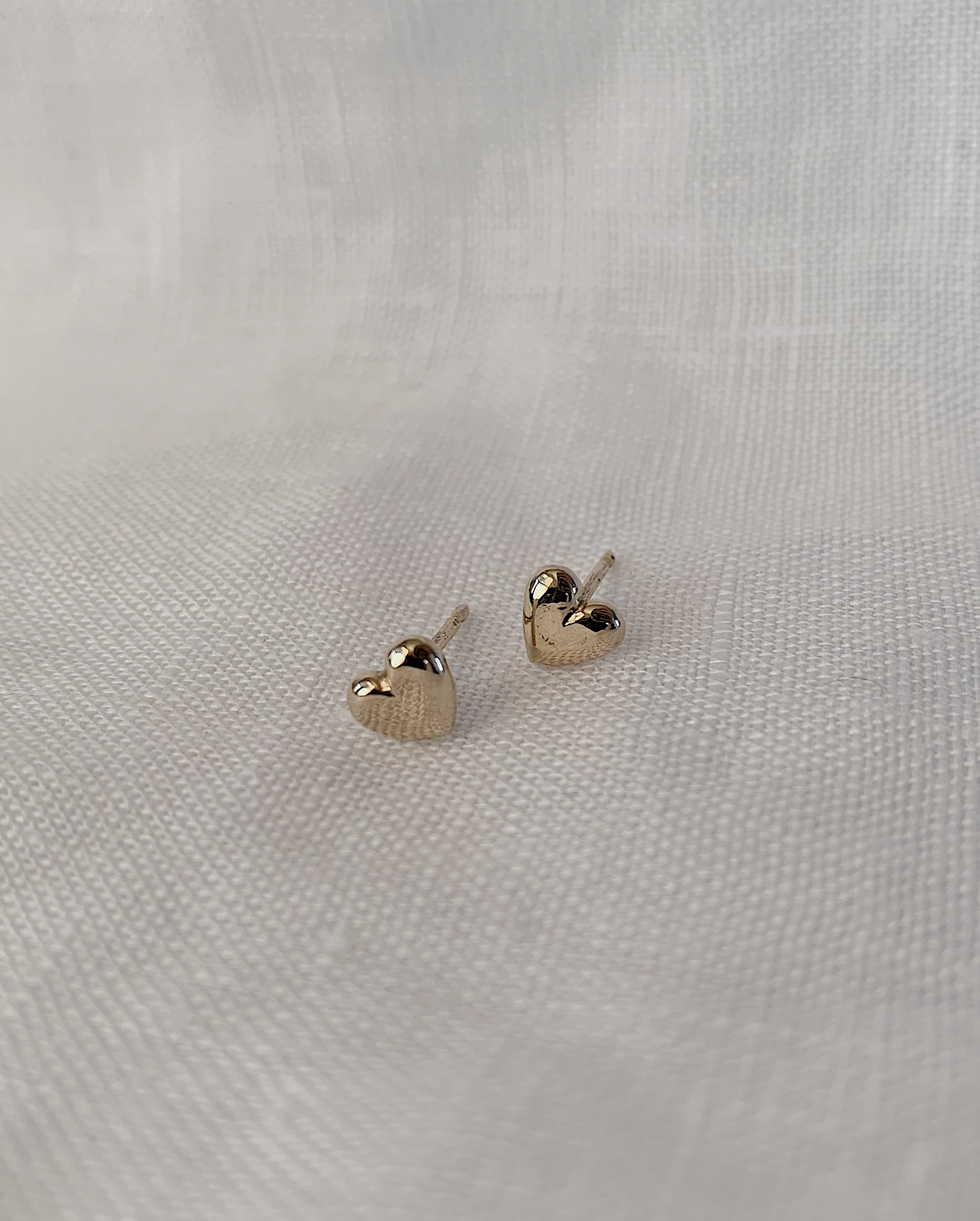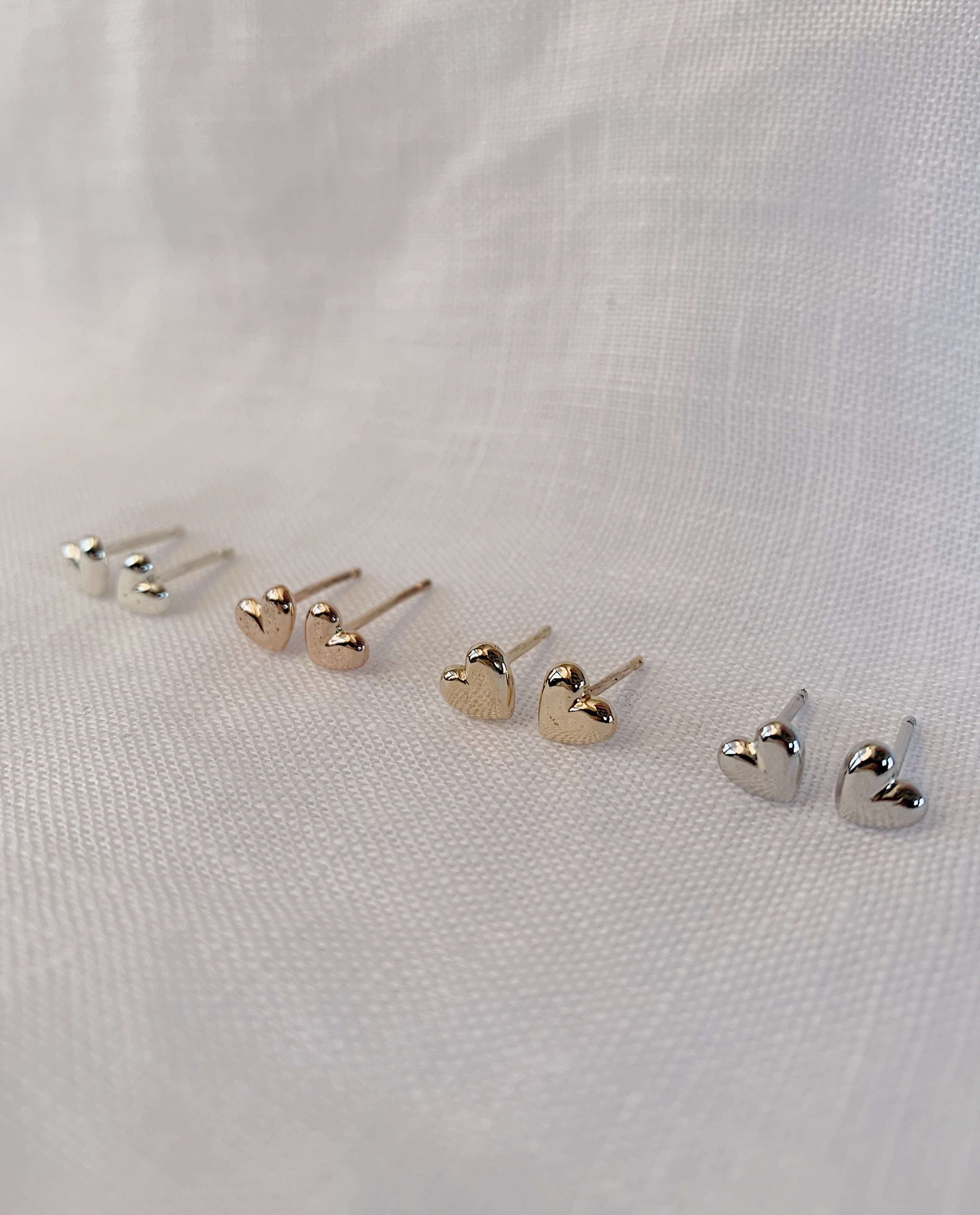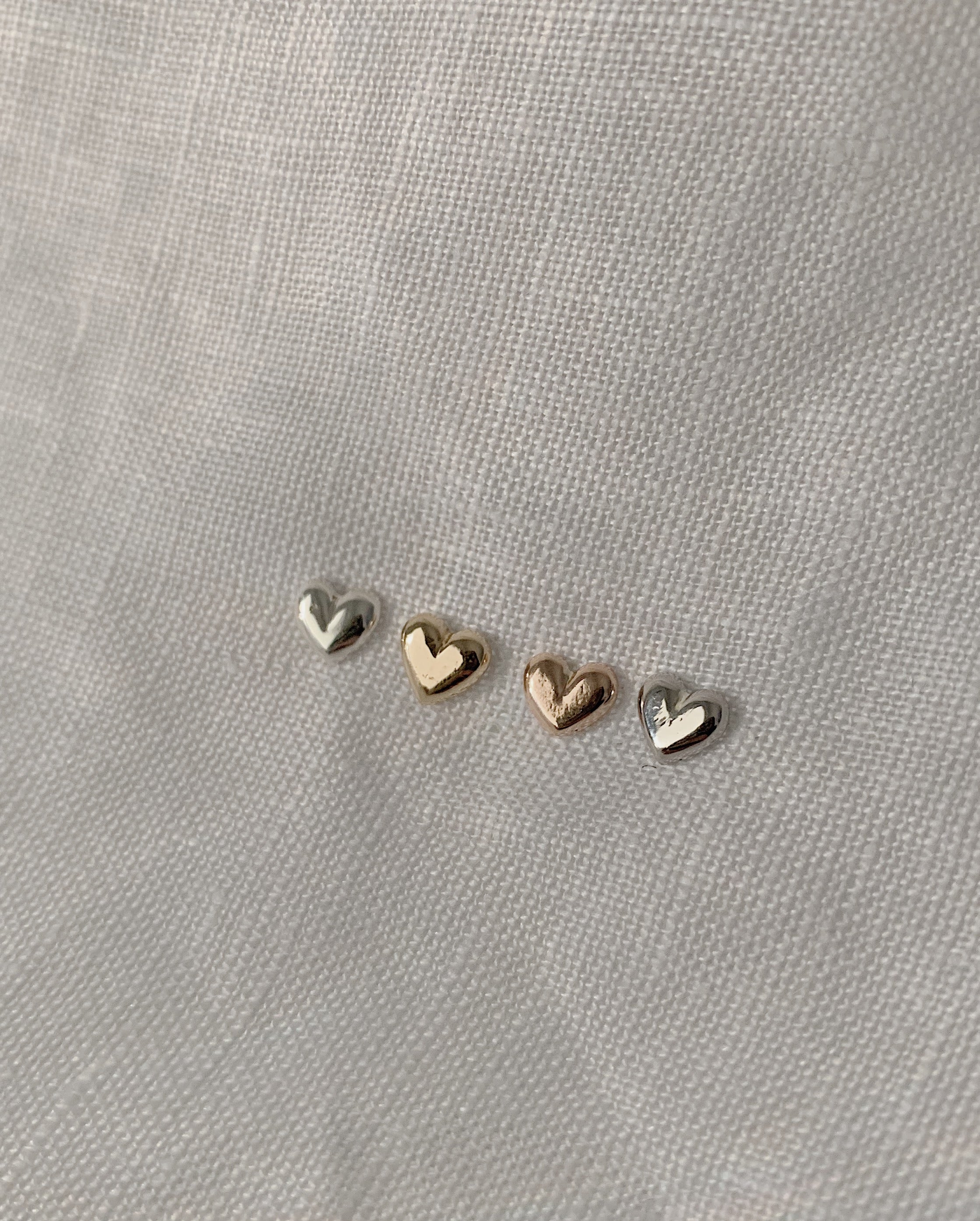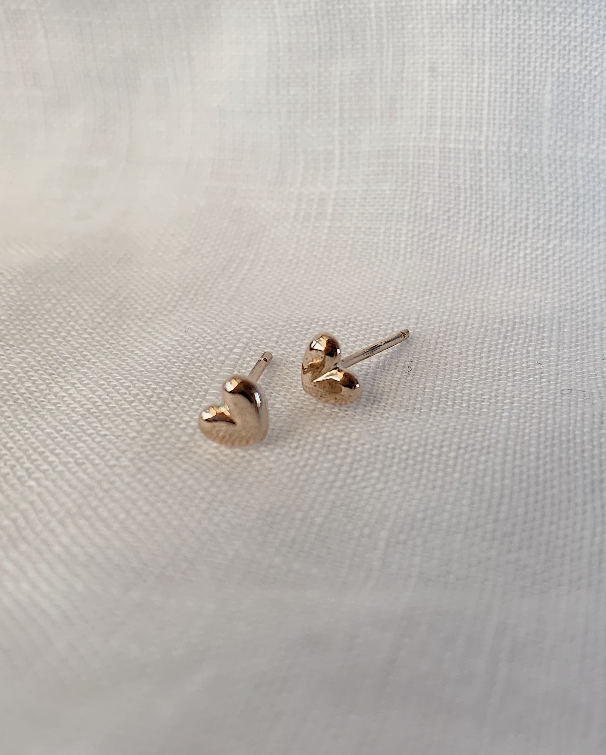 Little heart studs handmade in sterling silver, 9ct yellow or rose gold or Platinum.