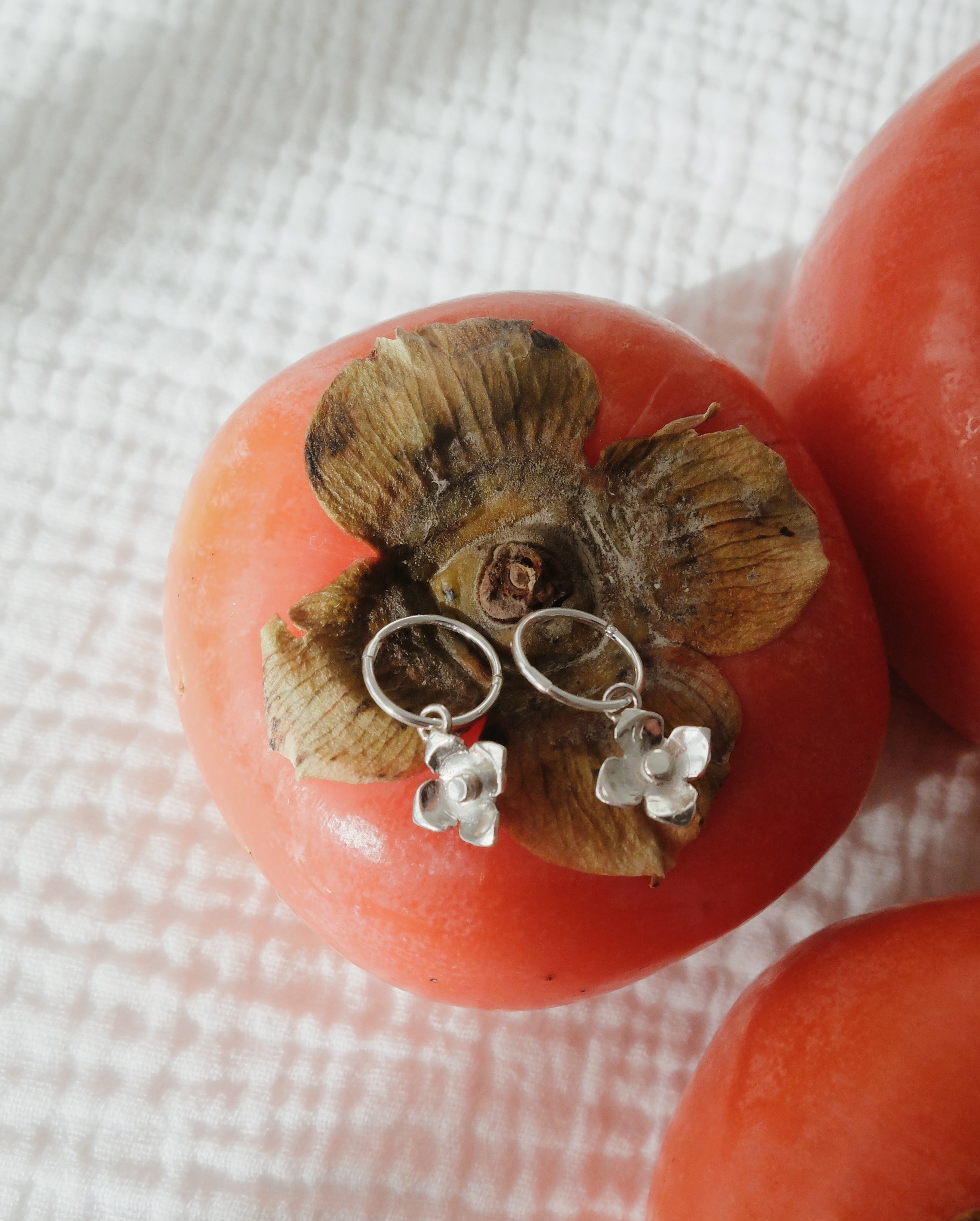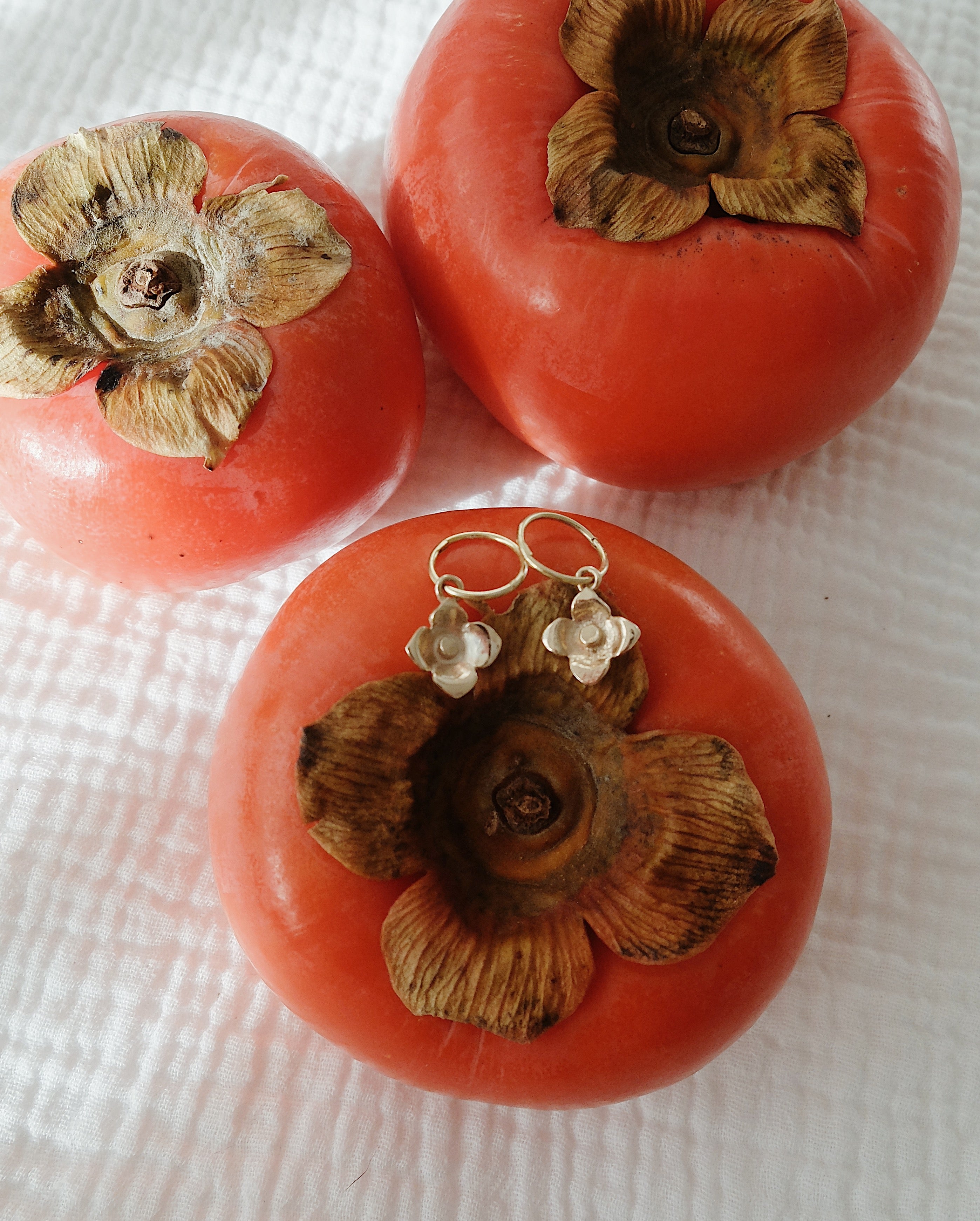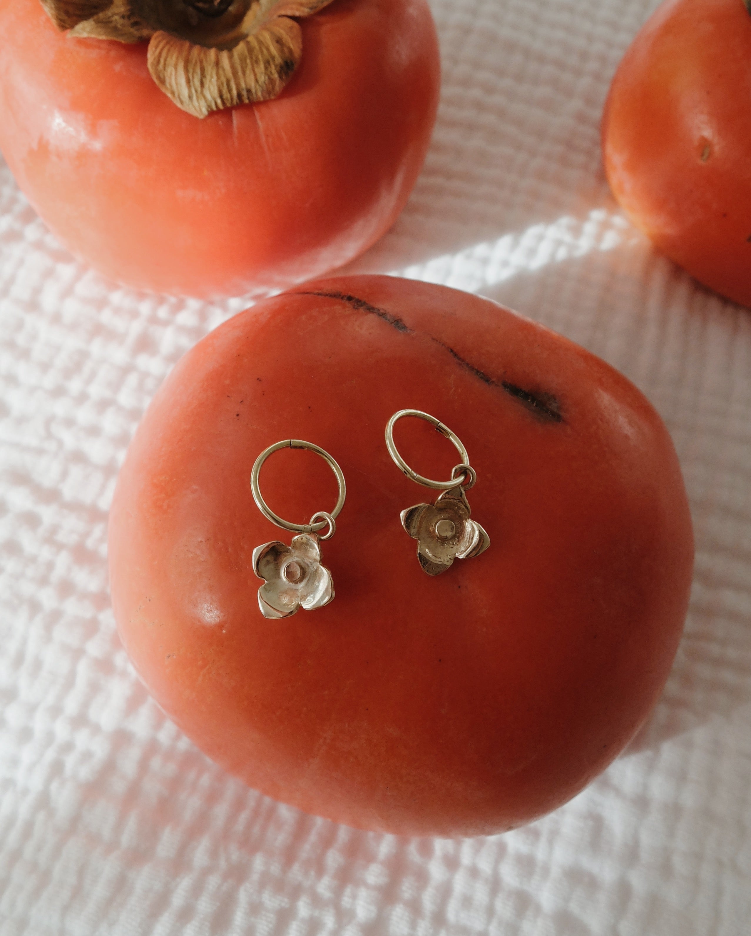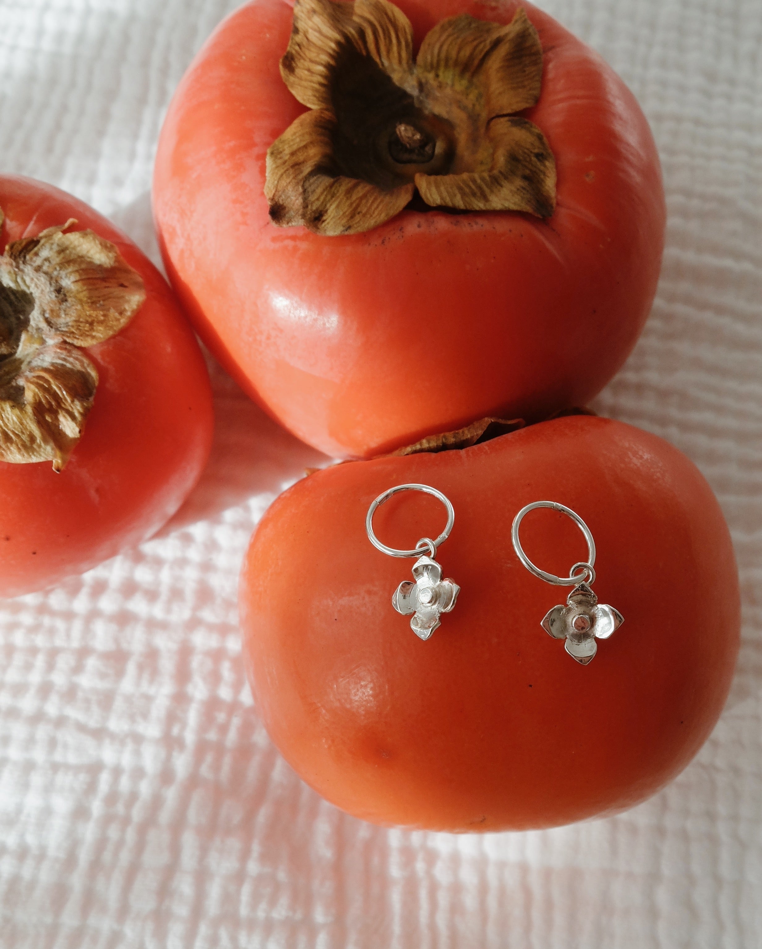 Persimmons are handcrafted in sterling silver or 9ct yellow gold and added to manufactured 12mm round sleepers in matching metal. Charms can be removed so sleepers can be worn by themselves.